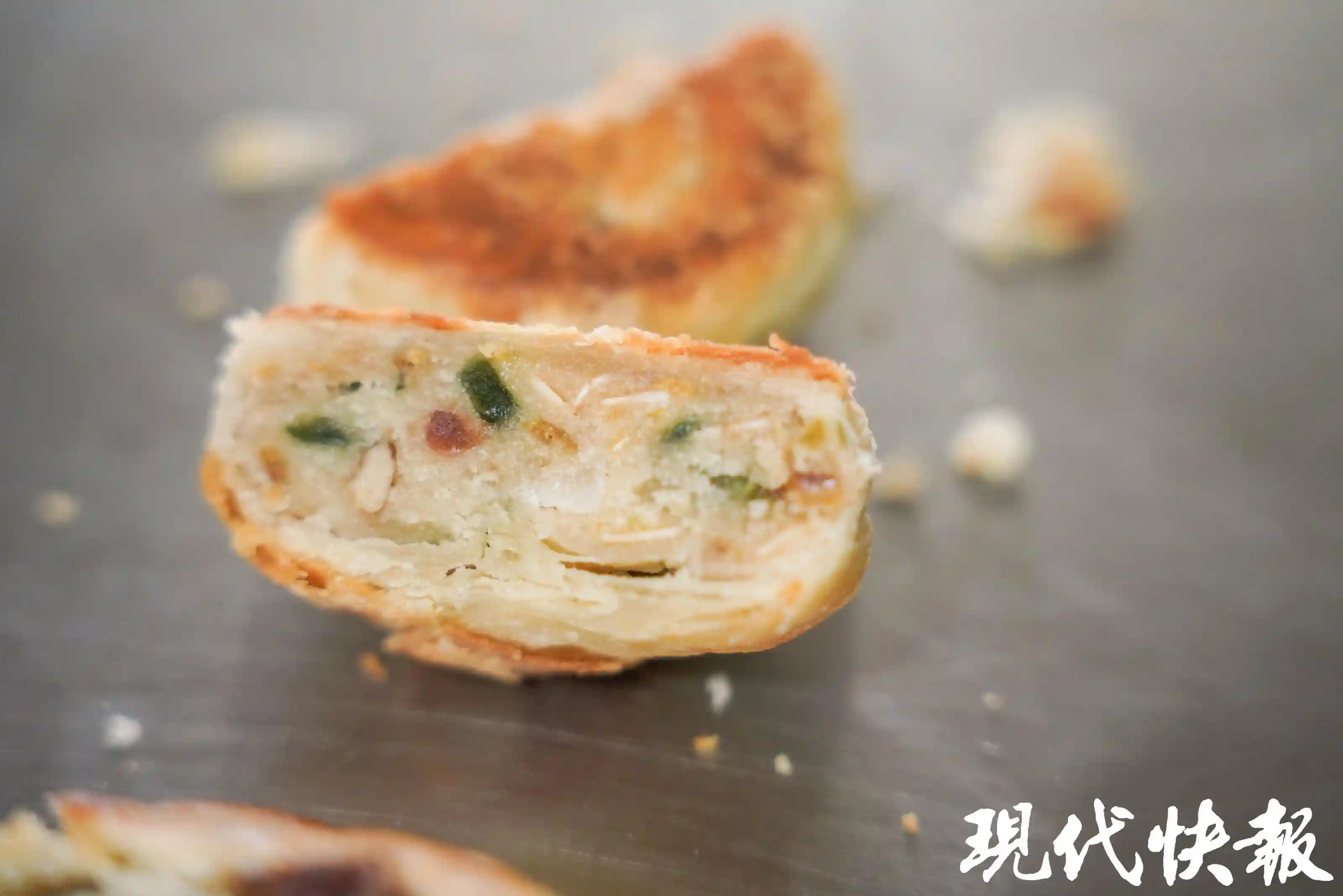 现代快报记者看到,许多刚做出来的月饼摆了满满当当好几笼,热气也让室内保持着较高的温度。店里摆出来的一个个月饼虽然包装朴实,但散发着令人怀旧的气息。店里同时还出售手工制作的“草鞋底”等南通传统美食,吸引了不少食客前来购买。