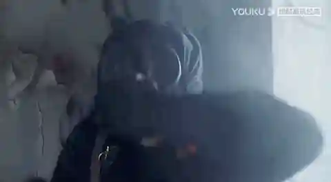 车队到达山区,山中失火,烟雾弥漫。