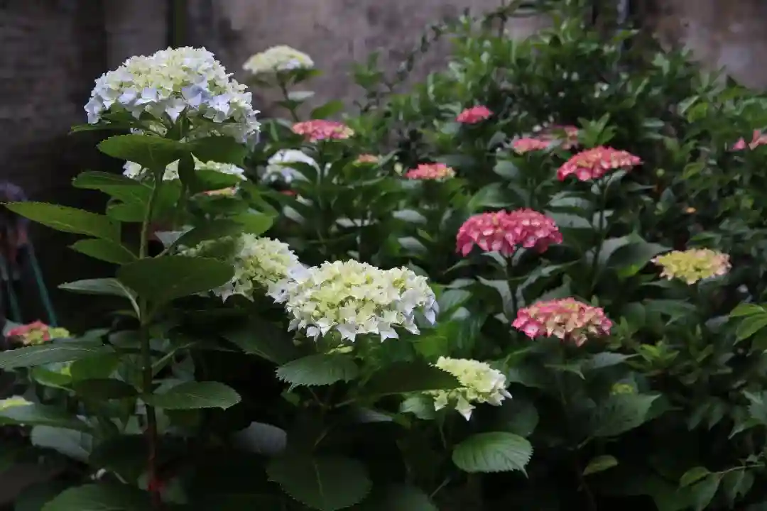 满园的绣球和石榴,