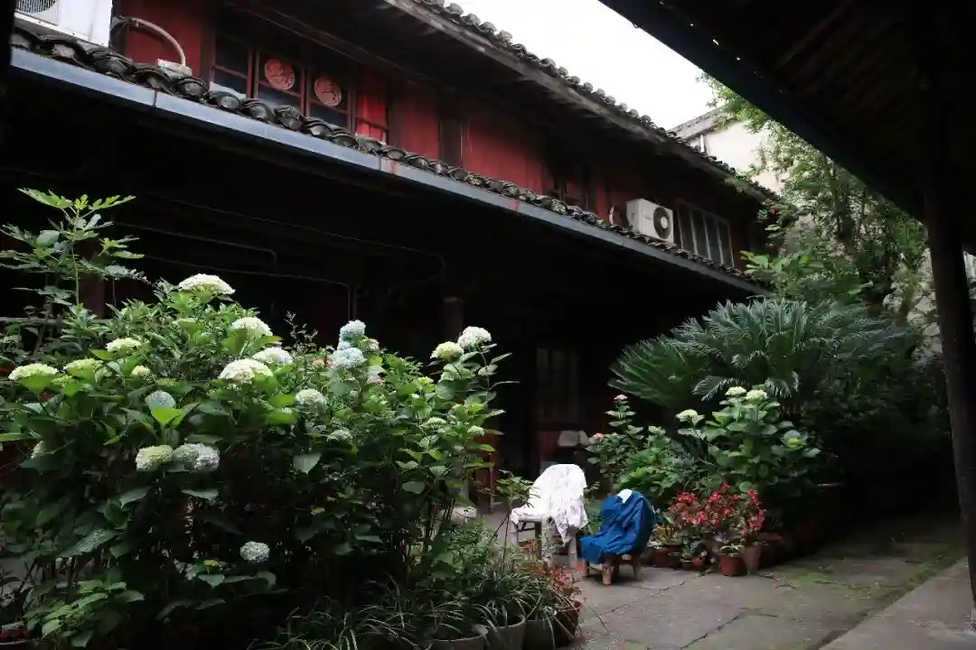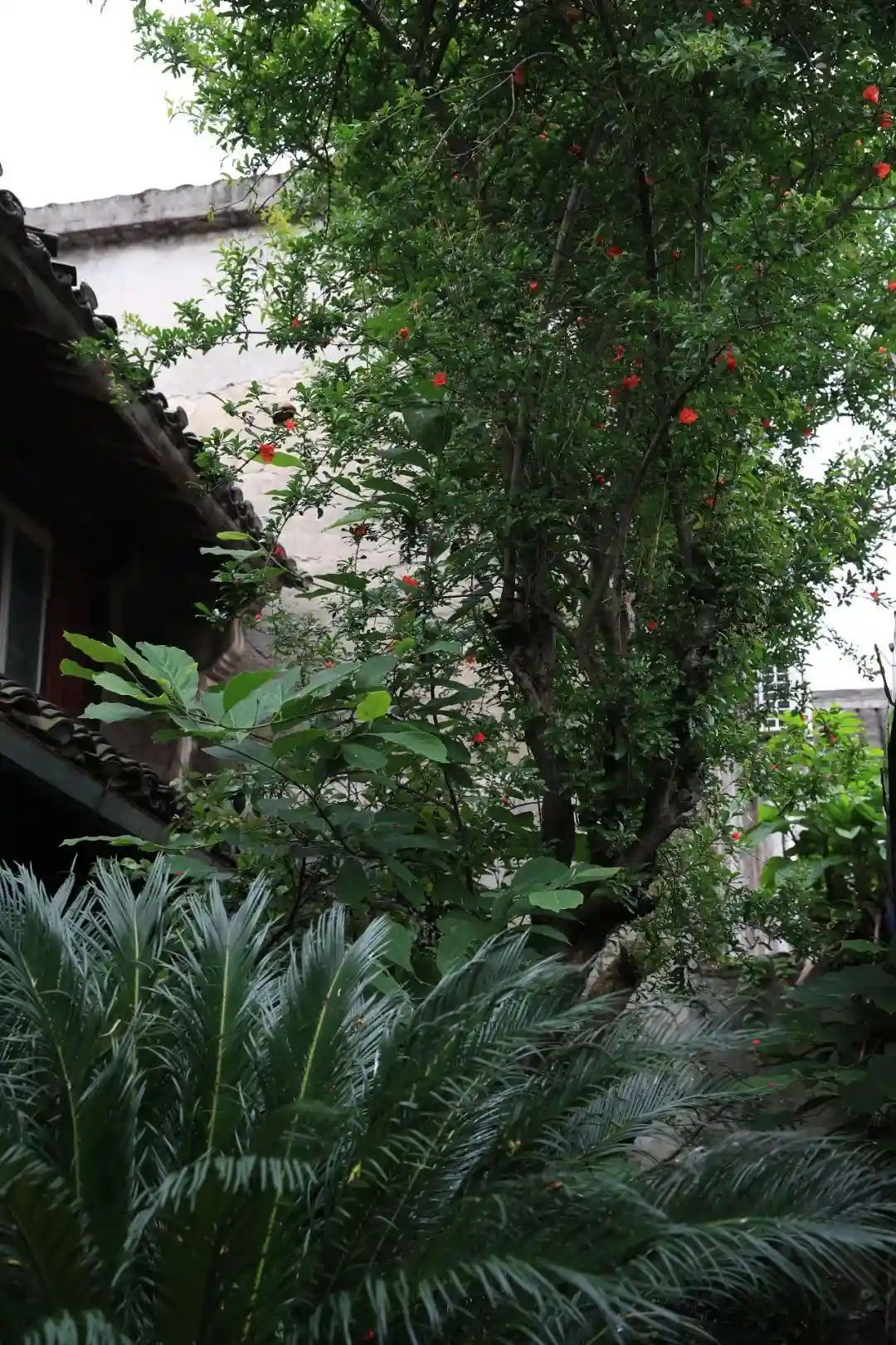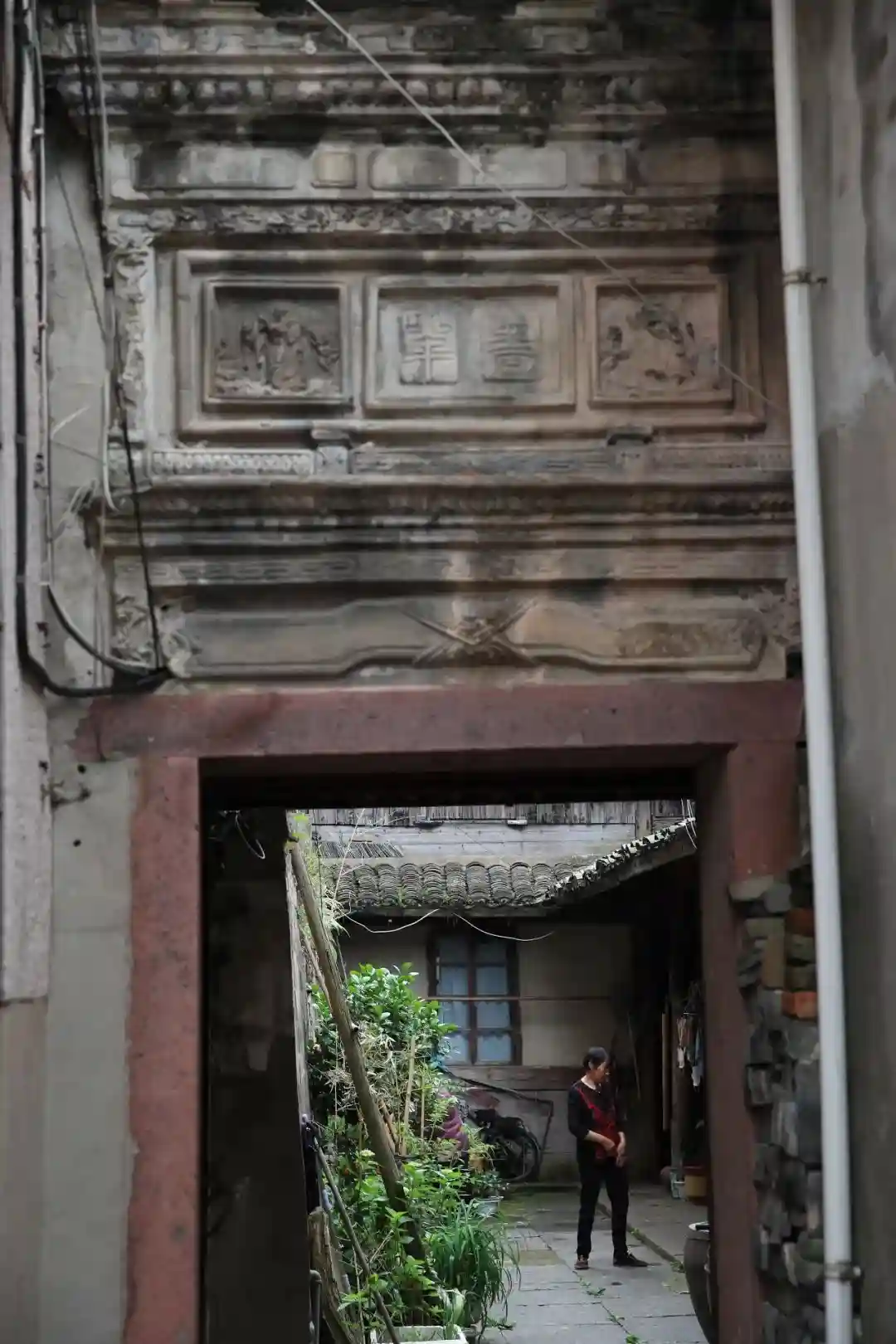 砖雕墙门里,绿植盎然