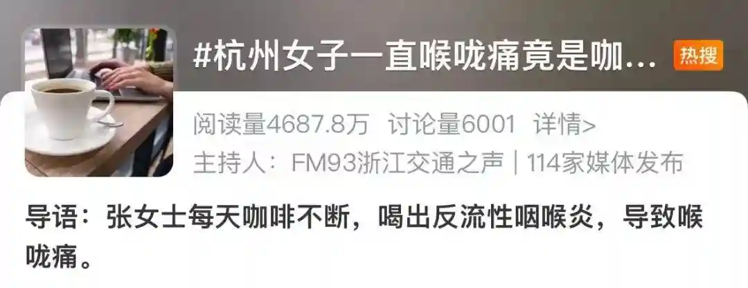 此前有媒体报道过,一女子一直喉咙痛居然是咖啡惹的“锅”。