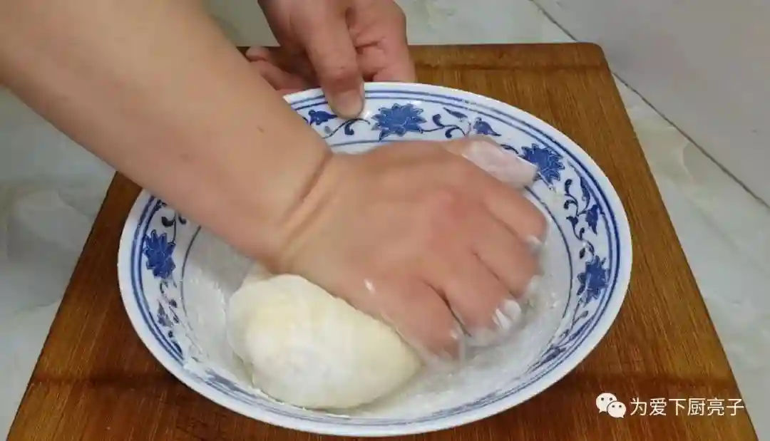 面团揉至三不沾,裹上一次性保鲜膜,发酵至两倍大小。