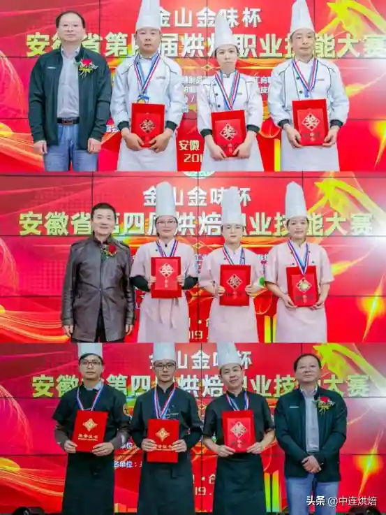另外还评选出安徽省大学生创新创意奖2名,由安徽省财贸轻纺烟草工会副主席范明怀颁奖;"技术能手奖"面包制作类10名,由安徽省市场监管局质量发展处主任龚治国、合肥市人力资源和社会保障局职业能力建设处处长束志伟、长丰县市场监督管理局食品安全管理局局长李亮颁奖;"技术能手奖"装饰蛋糕类10名,由安徽省烹饪协会副会长马邦山、安徽省市场监督管理局质量发展处主任张勇、安徽省烘焙行业协会常务副会长张元超颁奖;"技术能手奖"月饼技术类5名,由合肥市人力资源和社会保障局副局长陶成颁奖。