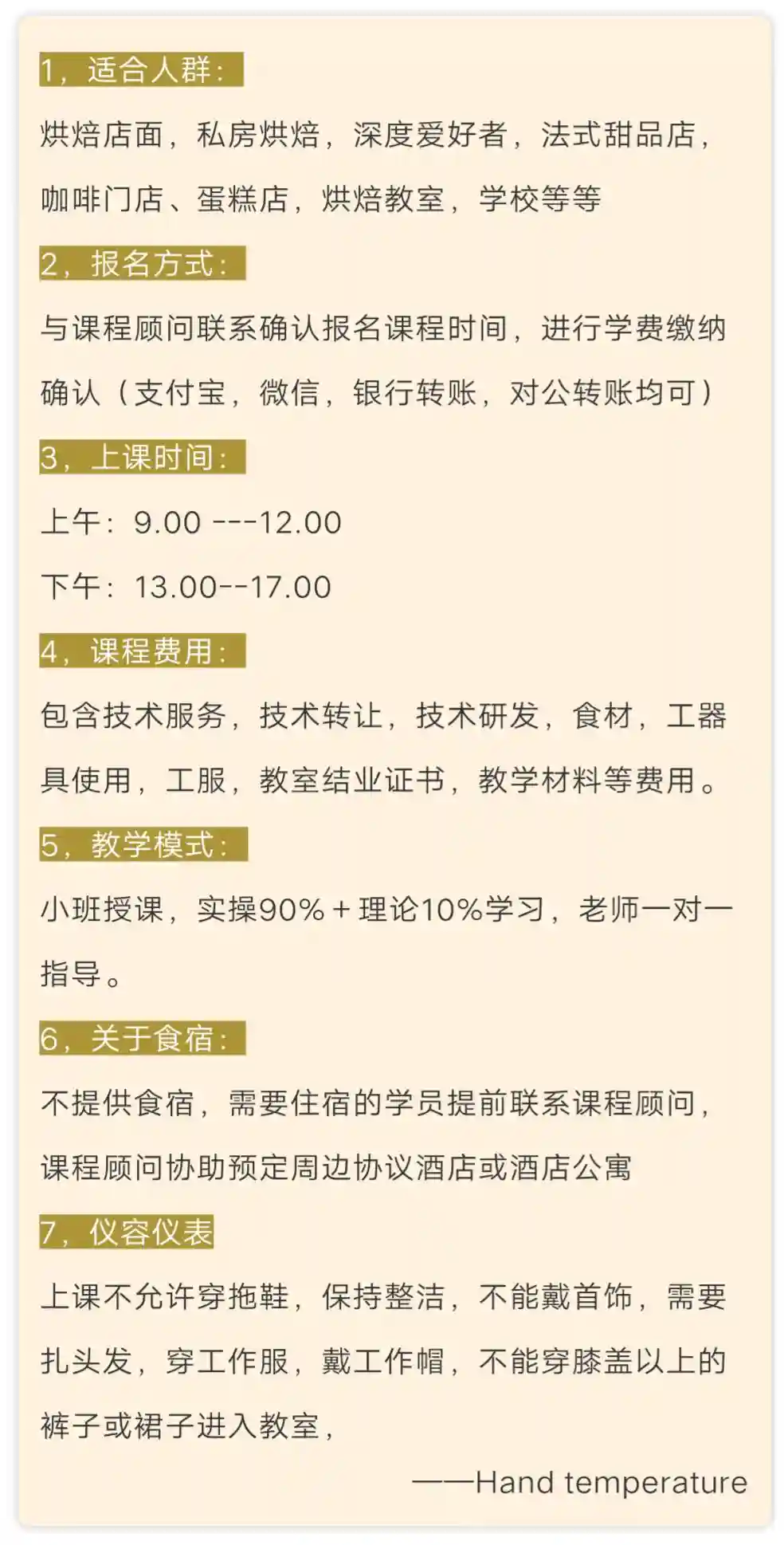 掌温烘焙教室Handtemperature是一家专业从事法式西点,蛋糕、下午茶、韩式裱花,翻糖蛋糕,创意蛋糕,面包、素食烘焙技术的产品研发应用中心,提供产品方案帮助学员创业,输出真正的烘焙产品技术,掌温Handtemperature有强大的师资研发团队,集结了/法国/德国/意大利/西班牙/乌克兰/日本/俄罗斯/韩国/中国等20多个国家大师,打造专业烘焙课程与欧美同步的产品,不出国门,就能学到国外先进的烘焙流行技术,从原料到配方到技巧构思设计,传授完整的解决方案.