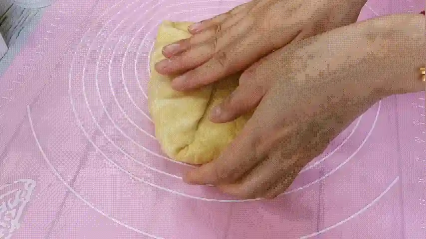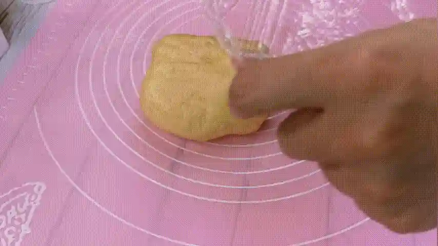第五步:发酵好的面团我们需要排一下里面的空气,只需要放在揉面垫上按压拍打,尽量不要破坏面团的内部组织。