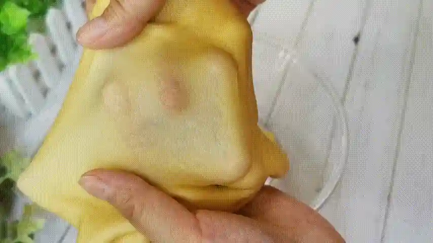 第六步:将面团像叠被子一样的方式,折成方形,每一次折叠都需要用手按压排气。
