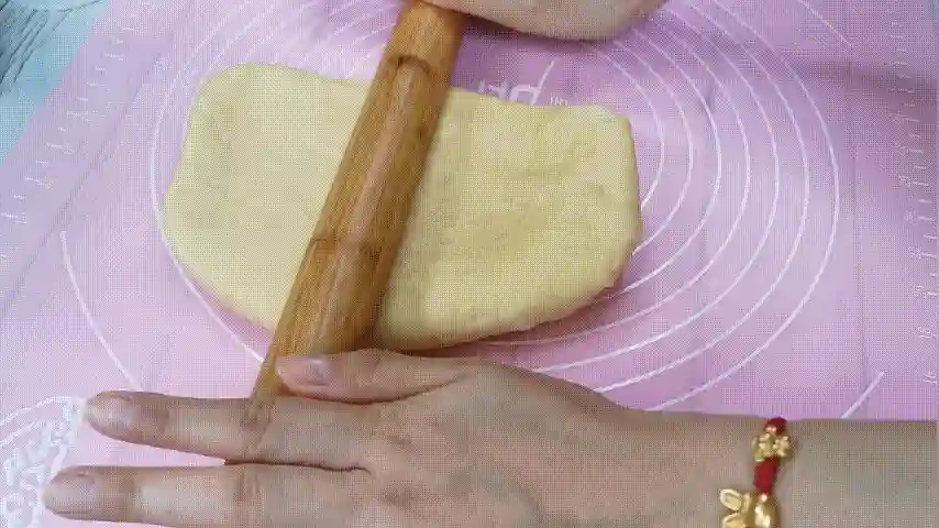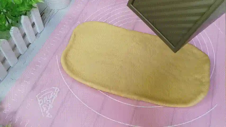 第八步:将松弛好的面团用擀面杖擀开,擀成大的长方形,宽度和吐司盒的长度一样就可以