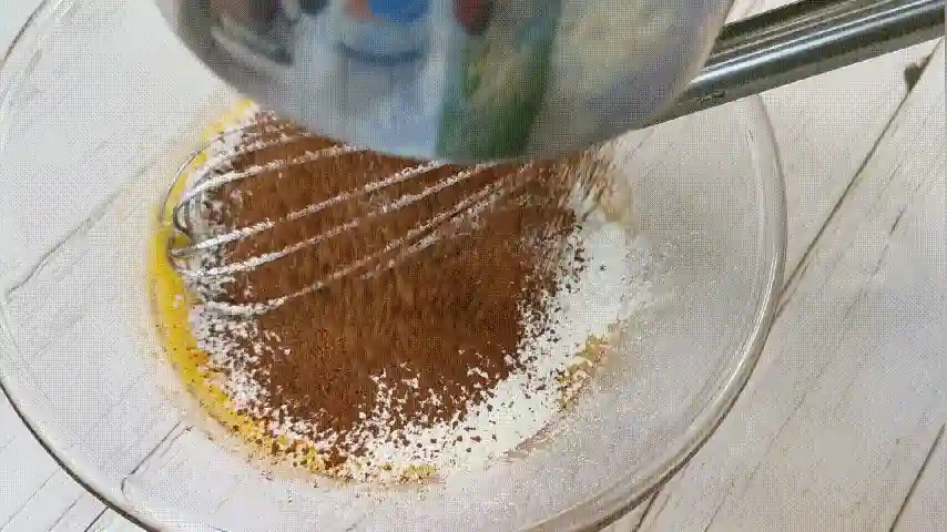 第十三步:将低筋面粉和可可粉过筛加入,然后搅拌均匀至无颗粒状。