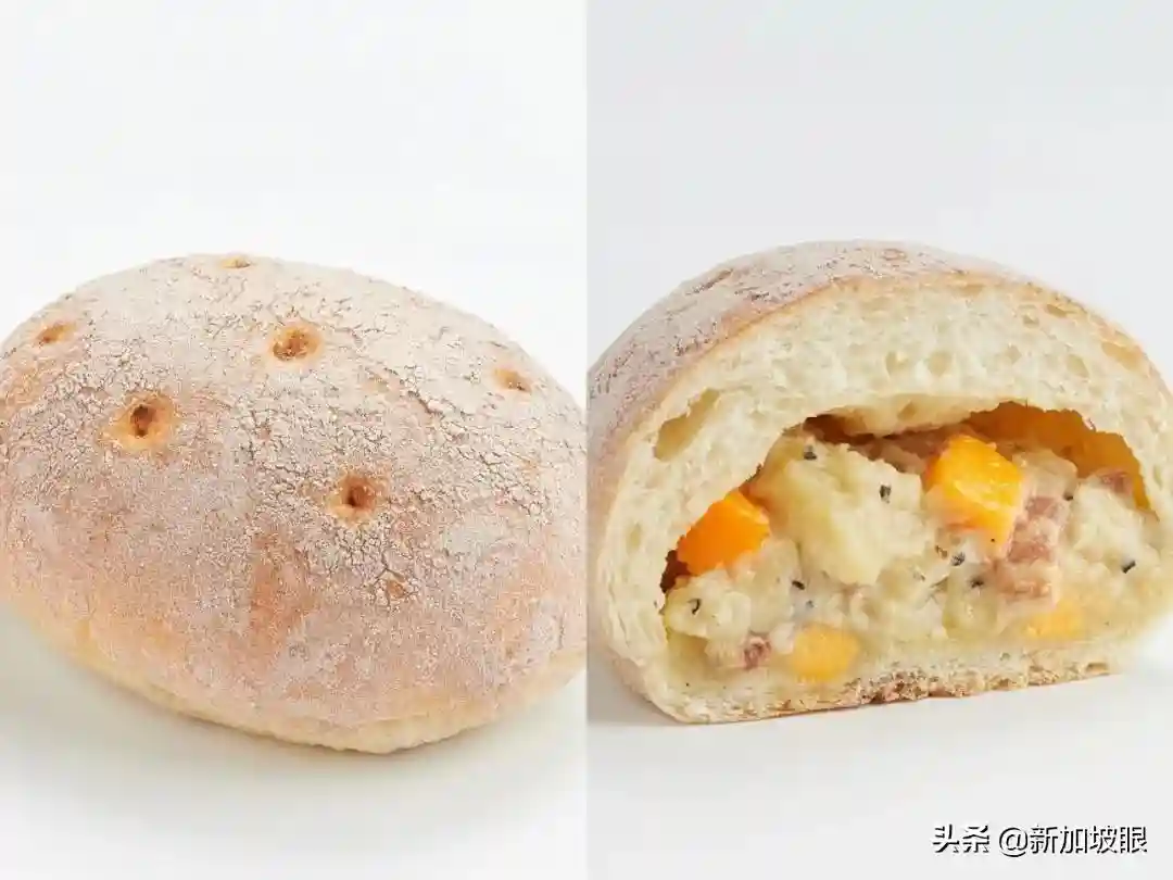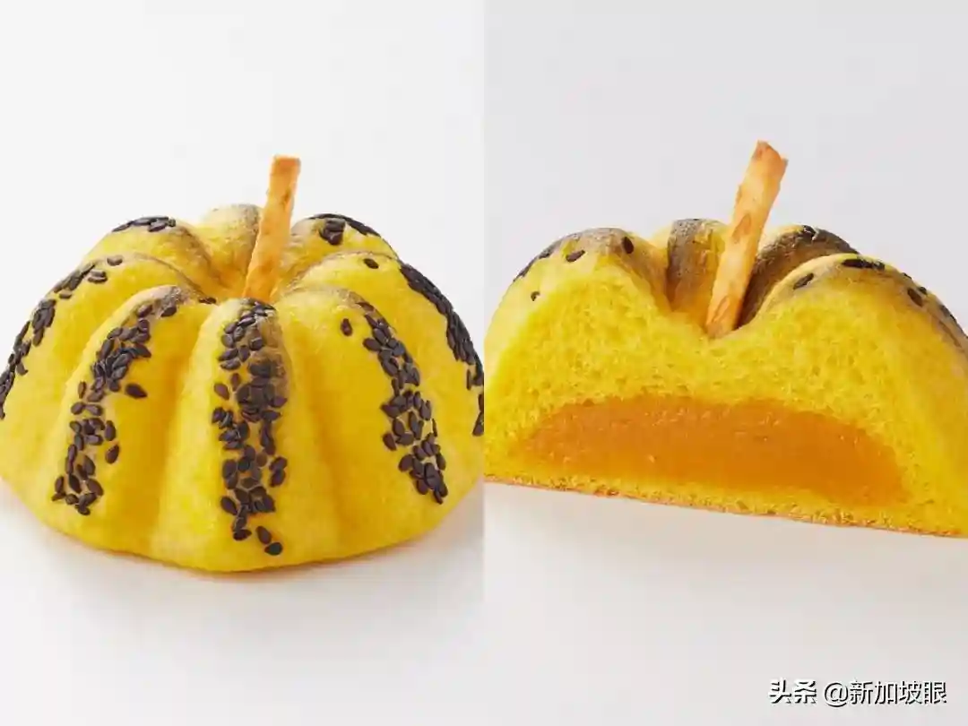 波点南瓜(Pol-Kaboca),Pol就是“波点”,而Kaboca在日语中为南瓜。面团加入了红萝卜还原南瓜的颜色,而内陷则是细腻的南瓜泥,味道酷似咖椰酱。