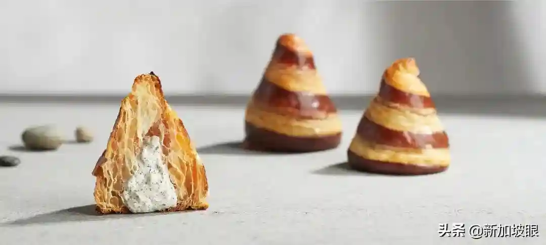 松露塔(TruffleTower),外皮是由巧克力可颂制成的一个锥形小塔,里面填充了松露慕斯。