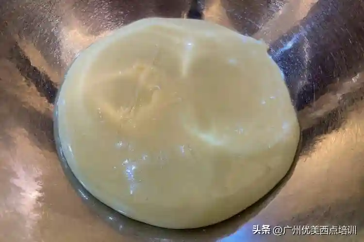 4/7将完成的牛轧转移到另一个盆中,稍微放凉到微烫,手温可触碰就可以操作了。如果放太凉,会让牛轧质地太硬,后续会很不好操作