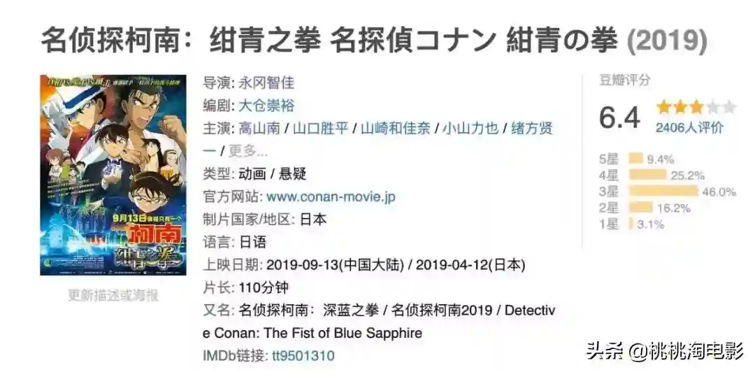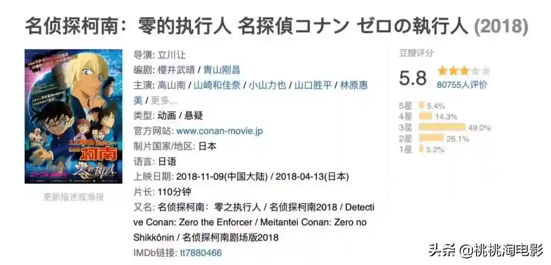 这几年《名侦探柯南》剧场版评分其实还是蛮稳定的,基本都是及格上下徘徊。不过相对于去年的《零的执行人》,今年这部评分还稍有提升。