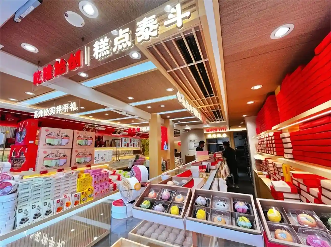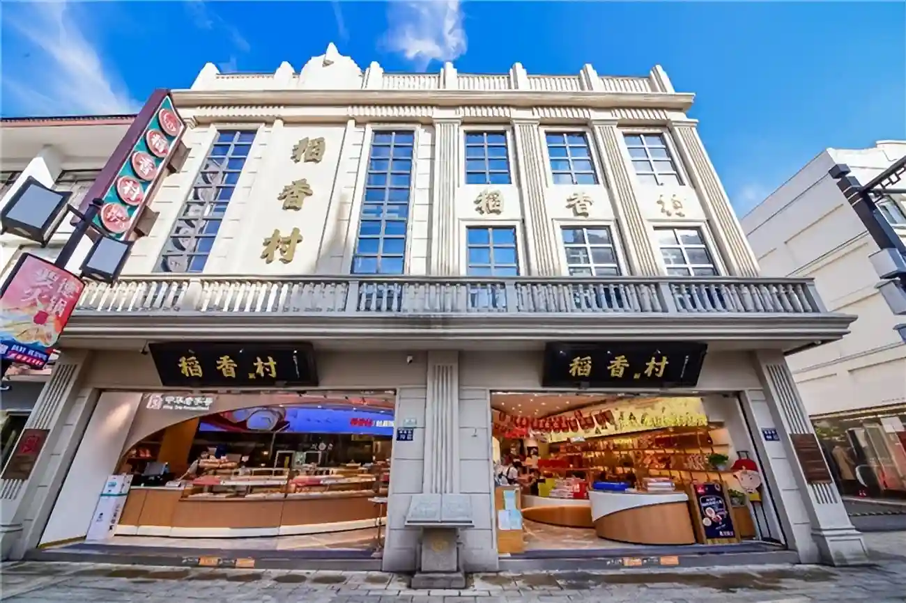 稻香村将百年旧址苏州观前街店升级改造为国潮体验店,创新设置了现烤裸卖区、手作区、茶饮休闲区、文化体验区等,让江南风情之韵与现代国潮之风进行完美融合,是当地热门的美食打卡点之一。