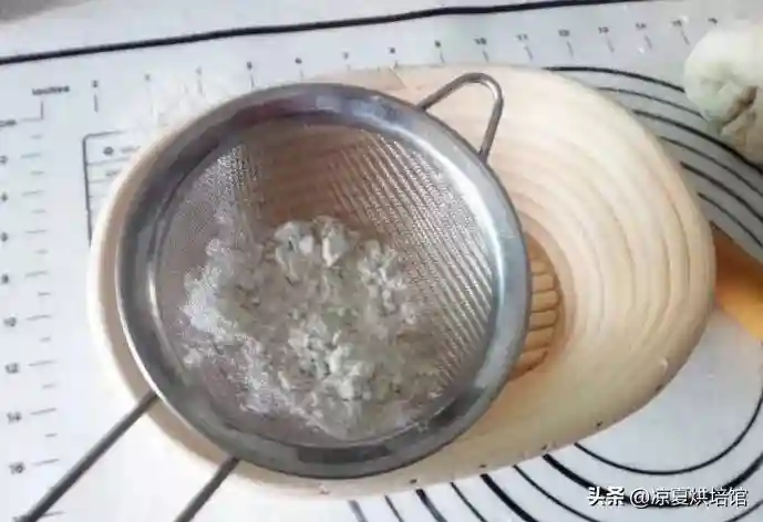 Step9:藤篮均匀撒上黑麦粉,将面团光滑处朝下放入藤篮