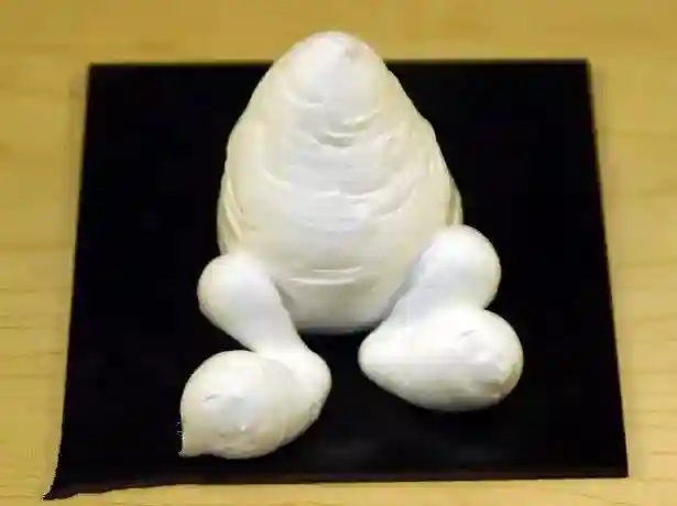 2.用29号圆嘴在身体最前方、最下端两边插入向两边上方表现大腿,再向下内侧下方表现小腿,脚向内侧大。