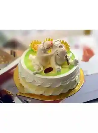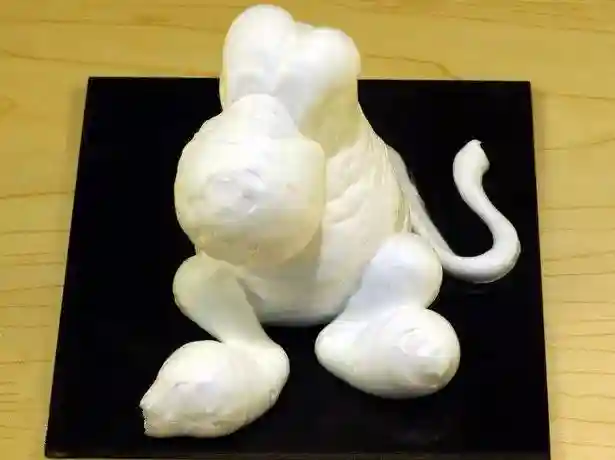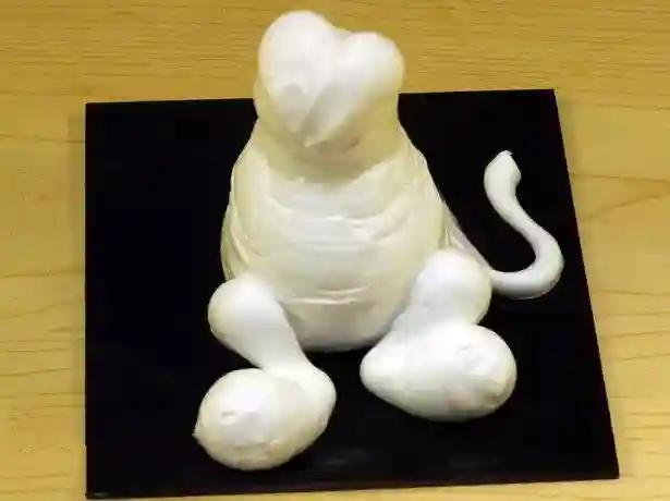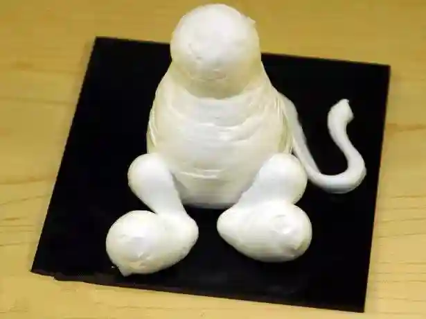 1.用29号圆嘴,垂直90度离蛋糕约1cm左右,挤圆球略大,再向自己的方向,平推挤奶油,再略向上形成肚子再向上45度,挤奶油形成前脑,再垂直向上拉出颈部。