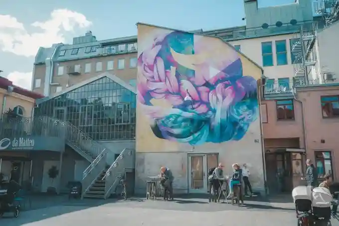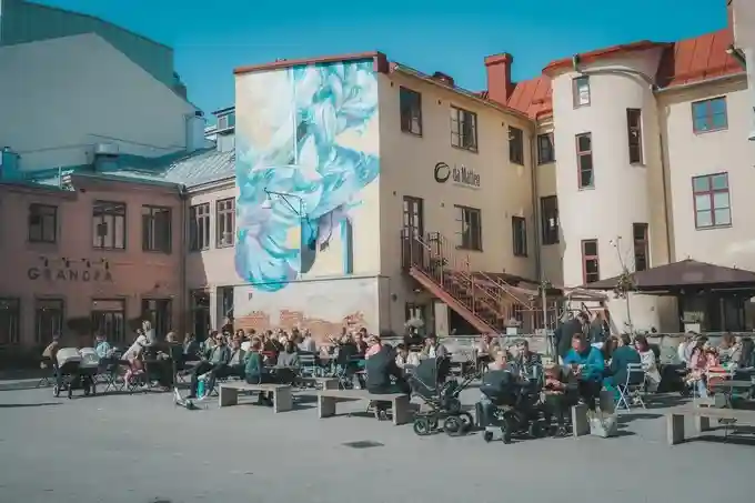 在哥德堡这边有名的咖啡店并不多,当地没看见星巴克这种外来品牌,本土有一家咖啡连锁品牌,精品咖啡的话数量不超过十家,我选择的这家叫Café-DaMatteo,是本地人最喜欢的精品咖啡店之一,这个品牌下有好几家不同的分店,墙壁这一家最经典,因为开在一个广场里,墙壁上都是涂鸦,大家坐在户外吃brunch喝咖啡,很接地气