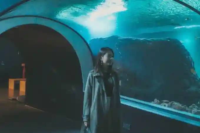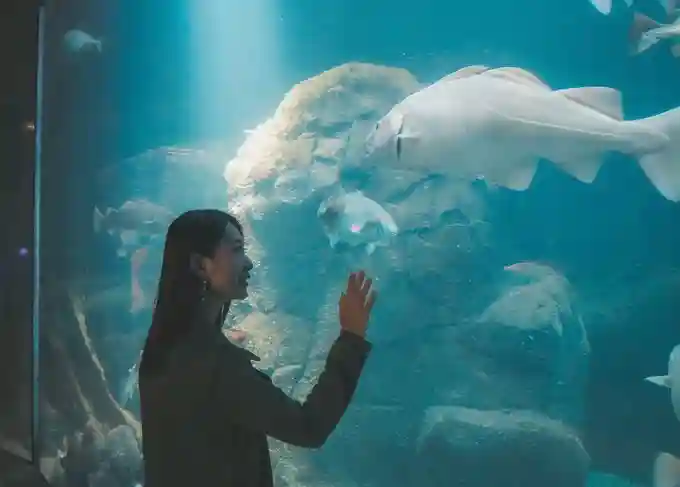 从旁边隐藏的门走进去,就进入了一个巨大的水族馆!一秒钟从雨林穿越到海洋,巨大的玻璃里还能看到平时很少见到的鱼儿,成群结队玩耍,太可爱了!