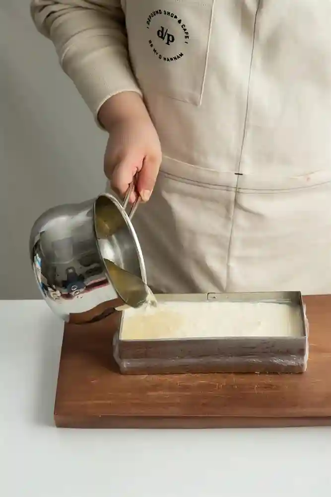 7将步骤2的模具从冰箱拿出来,倒入步骤6的馅料后,再度放入冰箱冷藏3至5小时凝固。