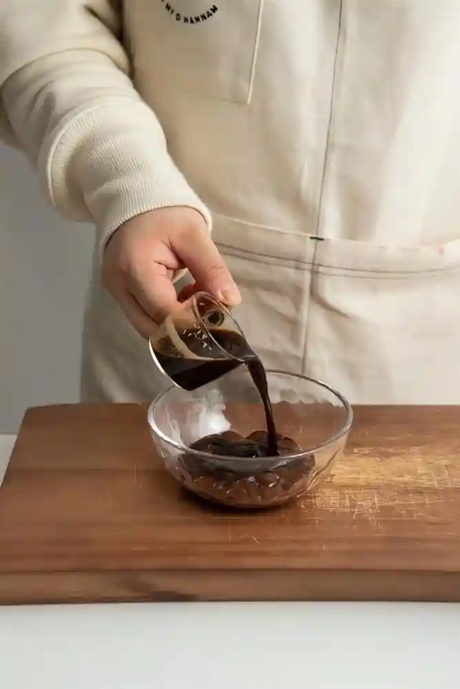 8即溶咖啡用热水泡开,倒入步骤7中搅拌。