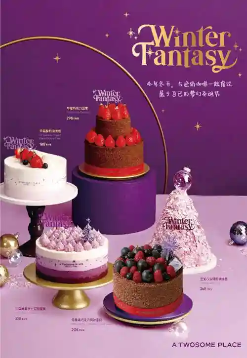 此外,途尚的人气产品红丝绒蛋糕、提拉米苏、鲜奶油蛋糕等,也会进行色彩鲜艳的紫色圣诞装饰,给人不一样的感受。