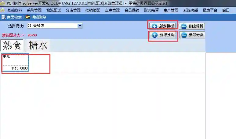 分店管理——零售扩展面板商品定义——新建模板——新增分类——添加咖啡类成品