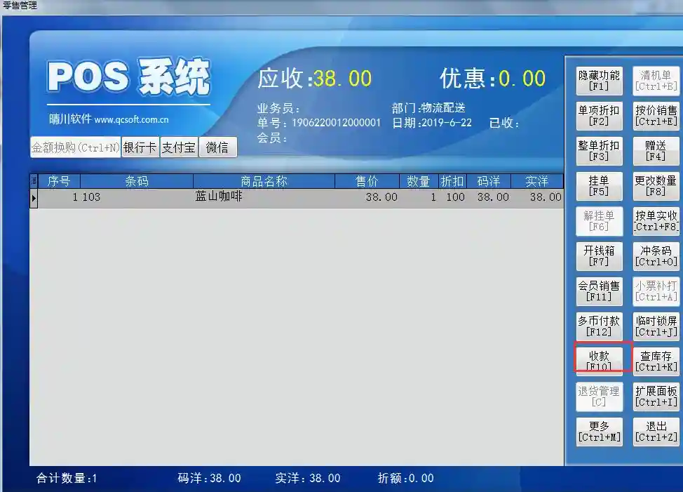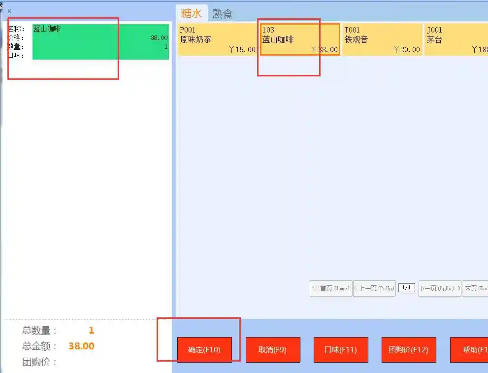 咖啡类商品在零售界面上的显示操作: