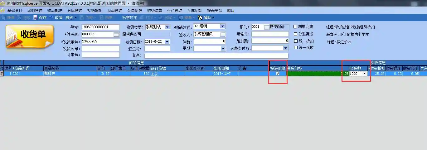 咖啡类商品只需要做原料入库就可以了,注意,在收货的时候,把所有的原料分解成最小单位收货(类似于克,ml等),同时收货的时候,勾选成本收货。