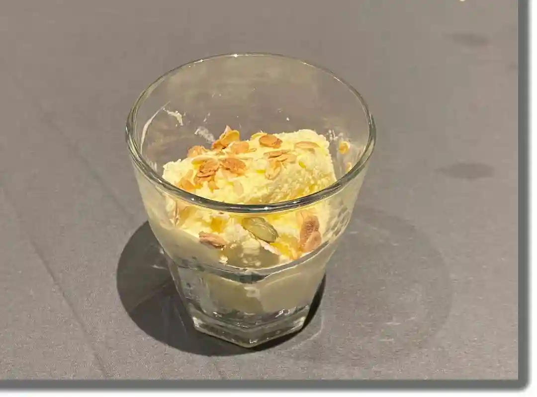 在杯中放一颗冰激凌,撒点燕麦。