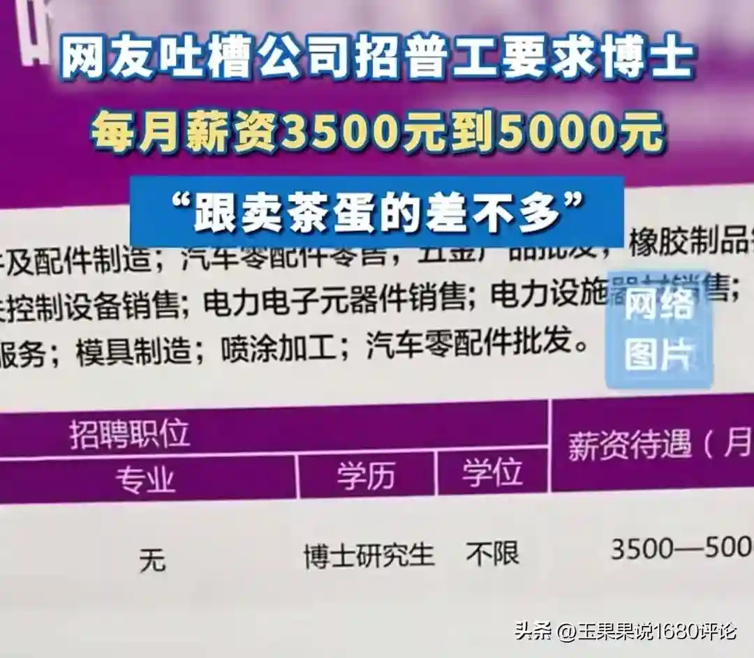 看似是在调侃博士工资和卖茶蛋的差不多,也真实反映了当下社会受高等教育人才的就业现状。