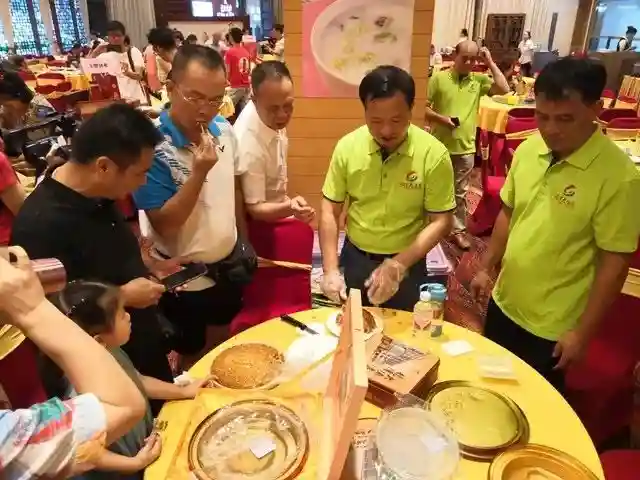 在这次的活动中,最受瞩目的当属由志成饼家制作的巨型鲍鱼烧鸡月饼,这款月饼得到了现场试吃市民的好评。