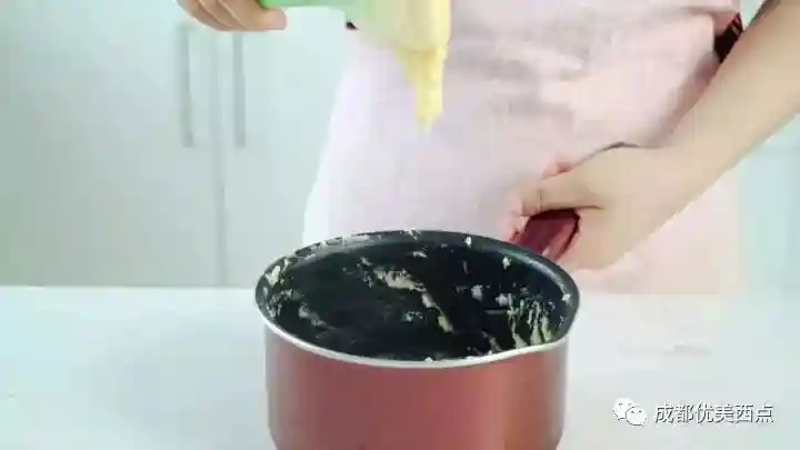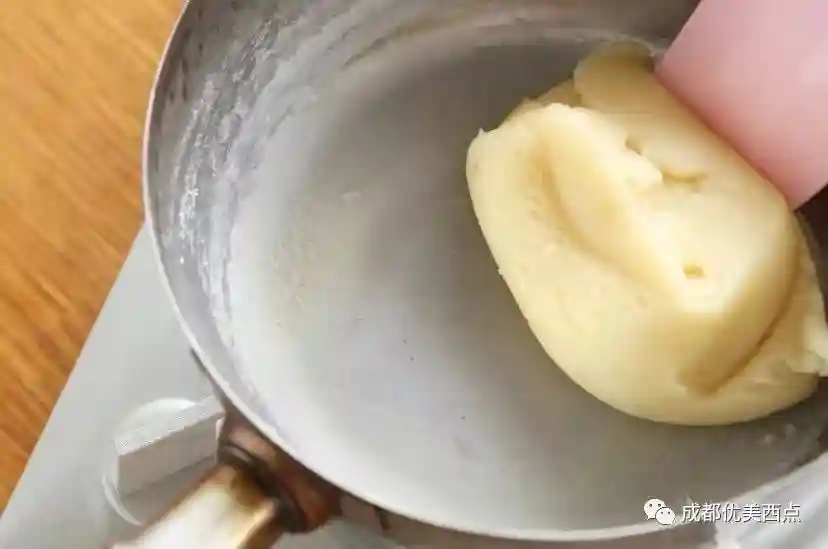 所以,在制作泡芙面团的时候,一定不能将鸡蛋一次性加入面糊,需要分次加入,直到泡芙面团达到完好的干湿程度。