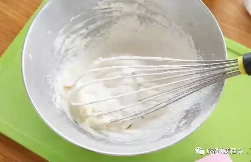 15、倒入淡奶油,加入细砂糖,打发即可。