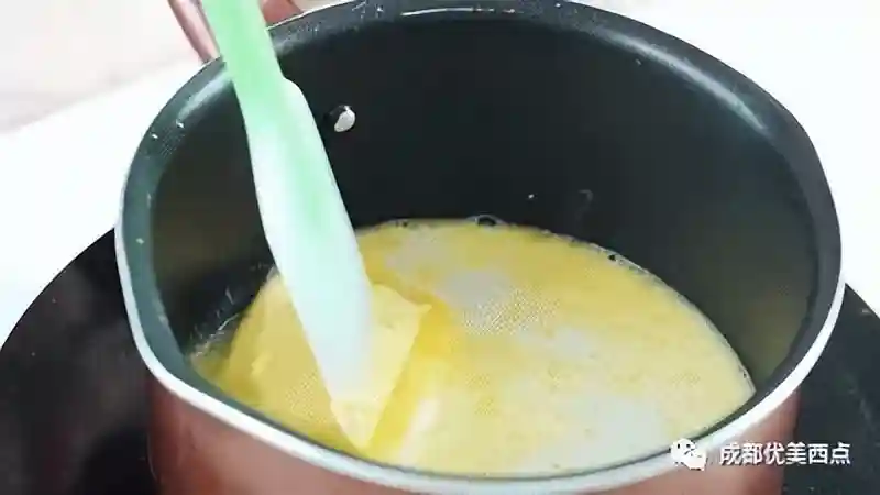 液体与黄油加热时,如果黄油还是固体状态,应先用小火加热,黄油完全融化后再加大火力,不然沸腾了,油还没融化。