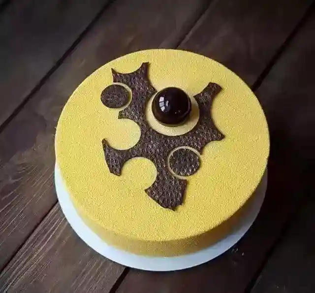 喷在冻硬的慕斯表面上
