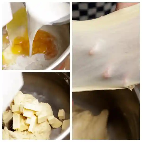 2.搅拌至面团光滑有弹性,加入黄油。