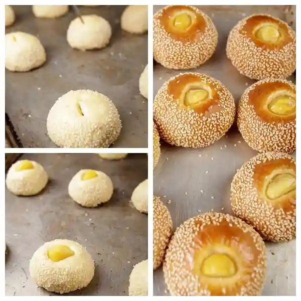10.沾上白芝麻。