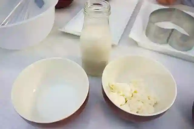 3)加入融化后的白巧克力,搅拌直到面团黏贴