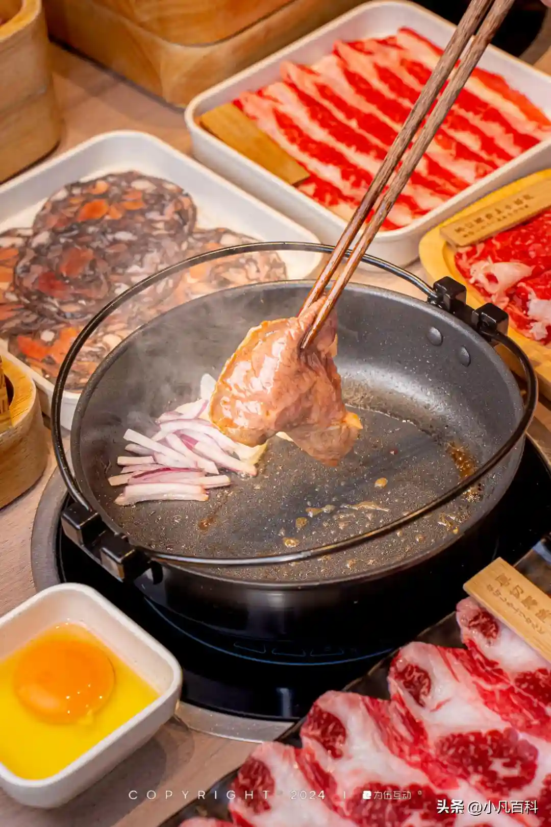 一家以原切牛肉为主题的火锅自助餐厅,采用日式寿喜风味为汤头。