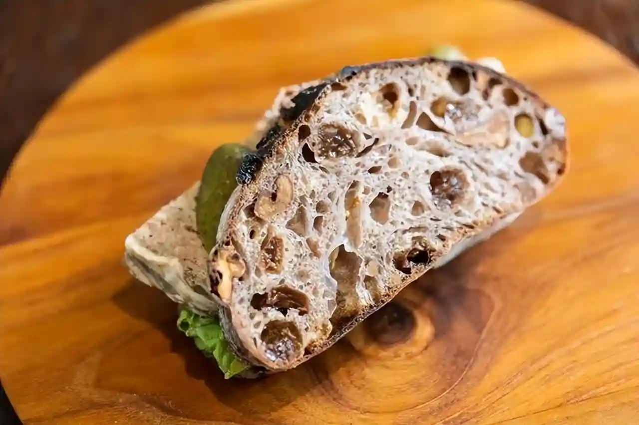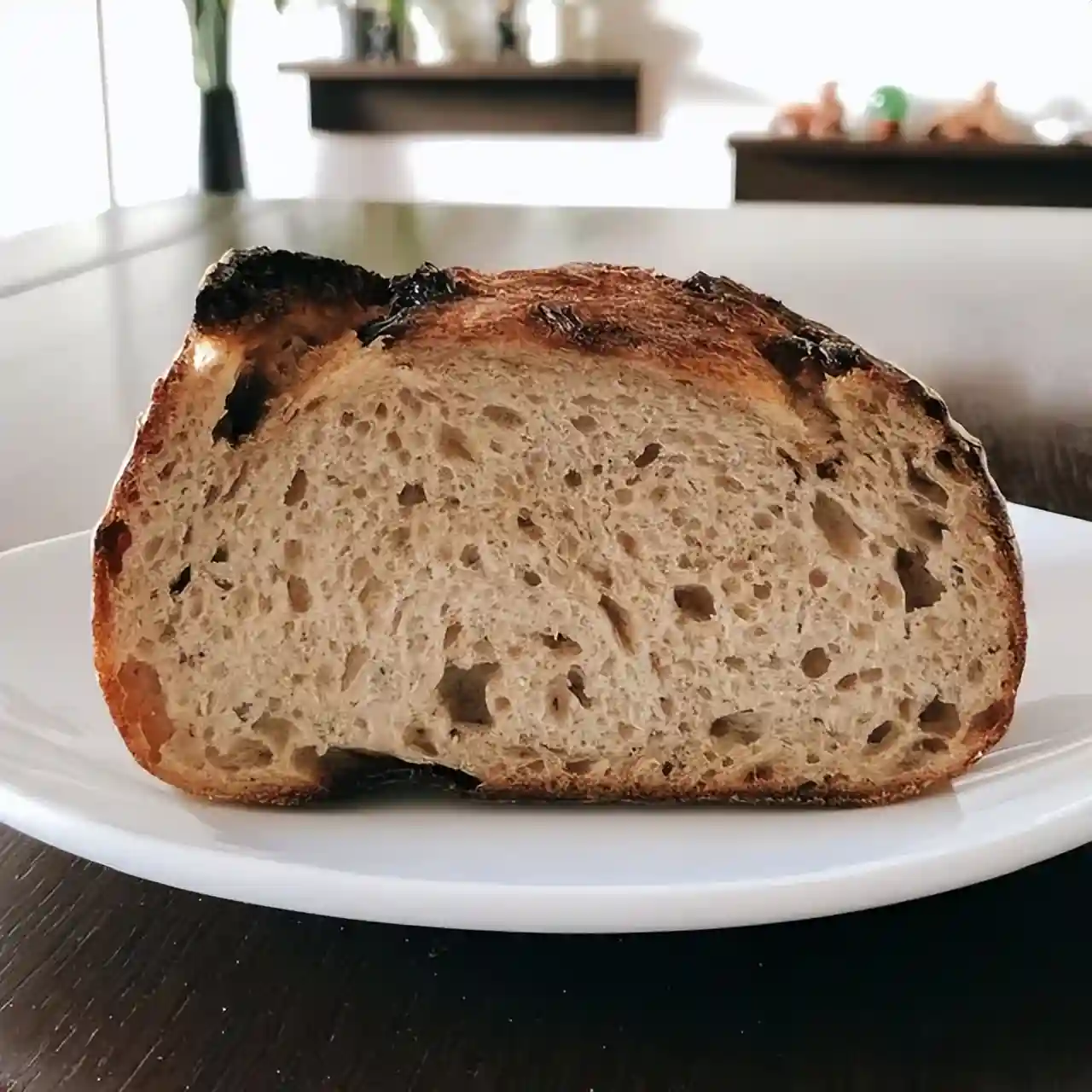 破裂的棕色外壳酥脆,富含鲜味;面包外皮又香又耐嚼。吃起来没有酸味,每一口都能感受到甜味。