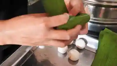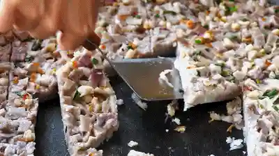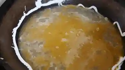 米粉浆用粘米粉和开水搓开,直到手抓时粉浆会从拳头的缝隙流下,就是稠度适宜了。下粉浆的过程很像给蛋糕裱奶油花,但做蛋糕有裱花袋,濑锅边却纯靠手。