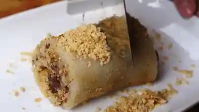 糯米卷里包含红豆、花生、黄豆粉,吃得到新鲜馅料恰到好处的香甜。