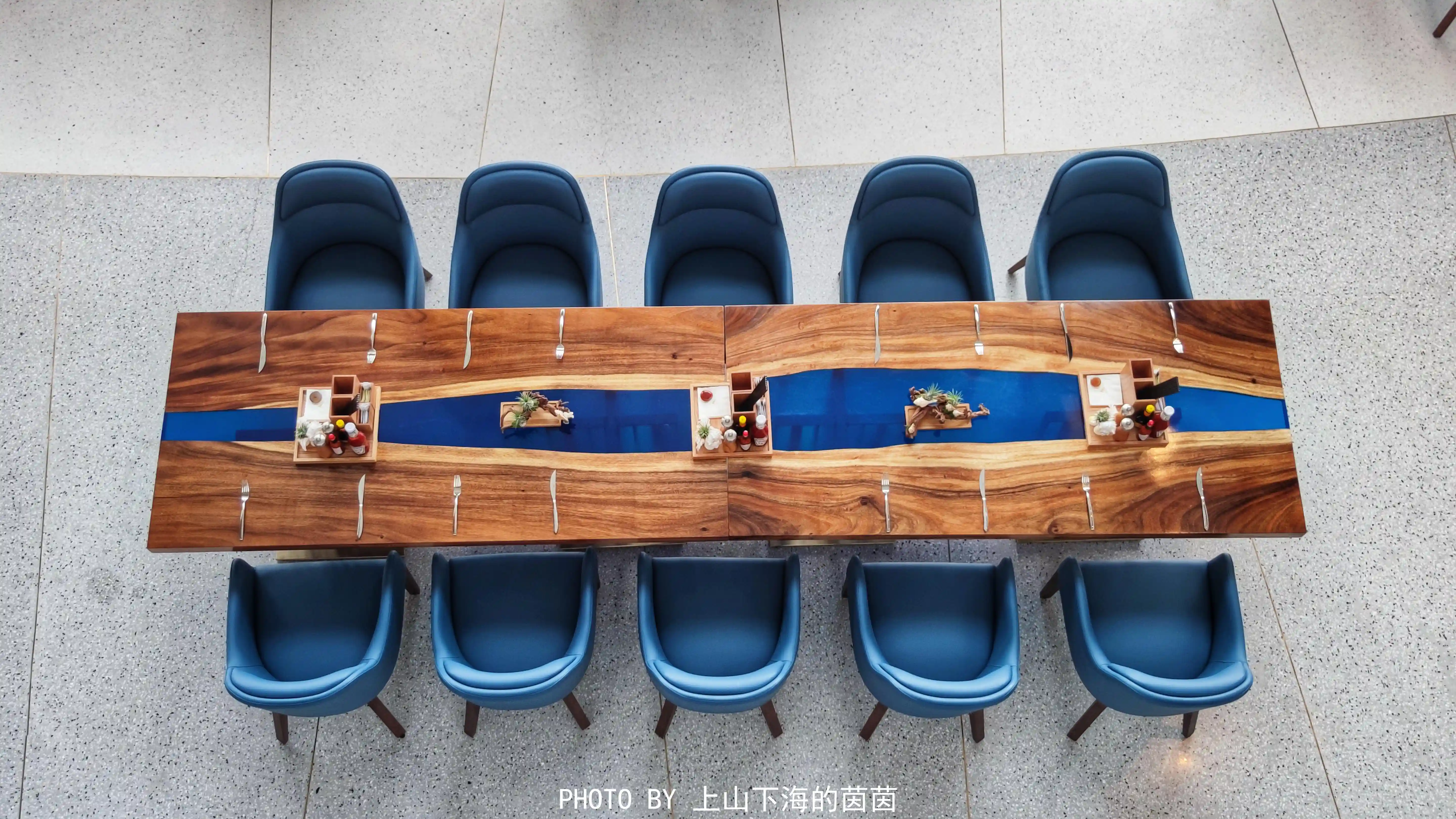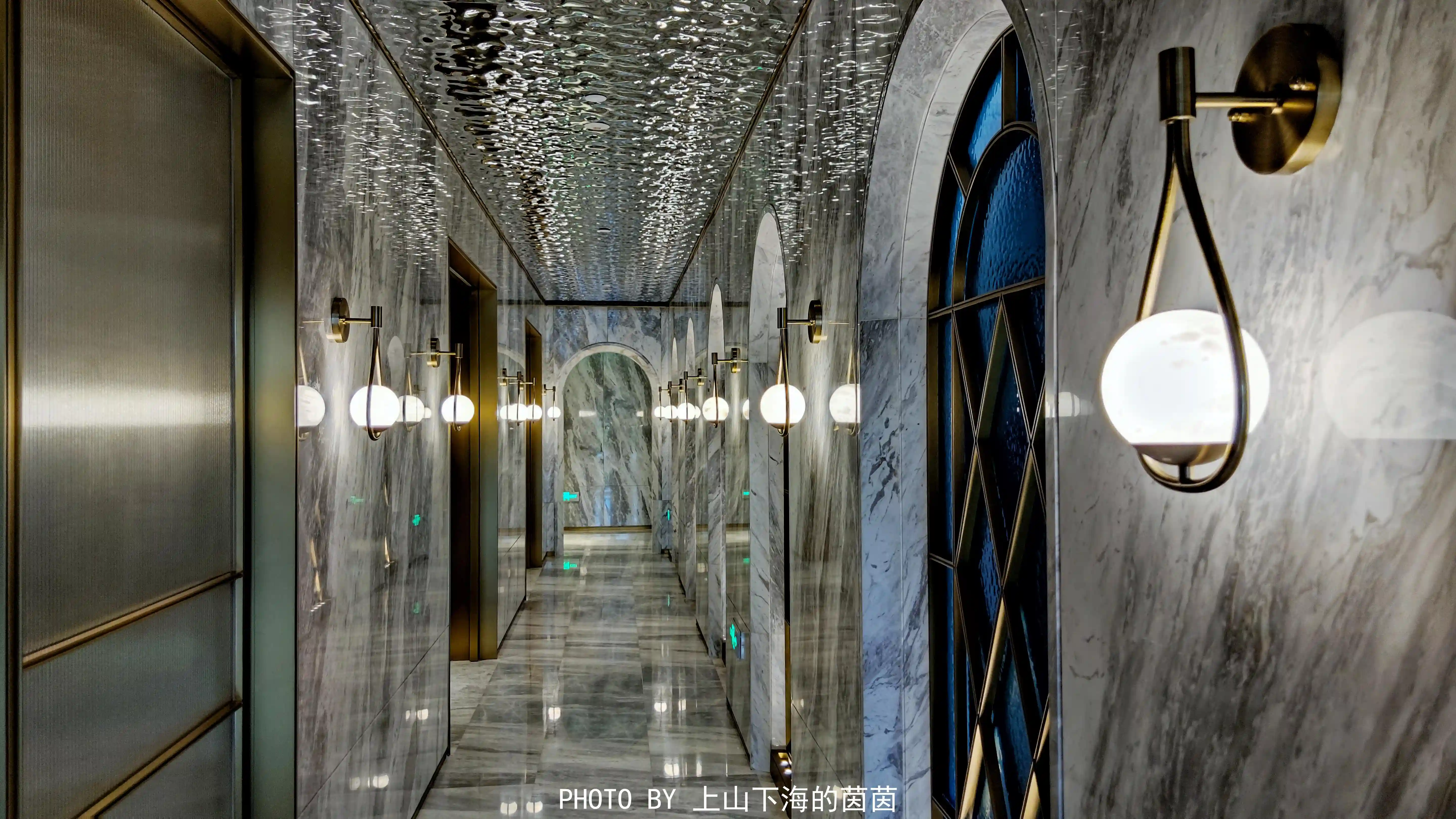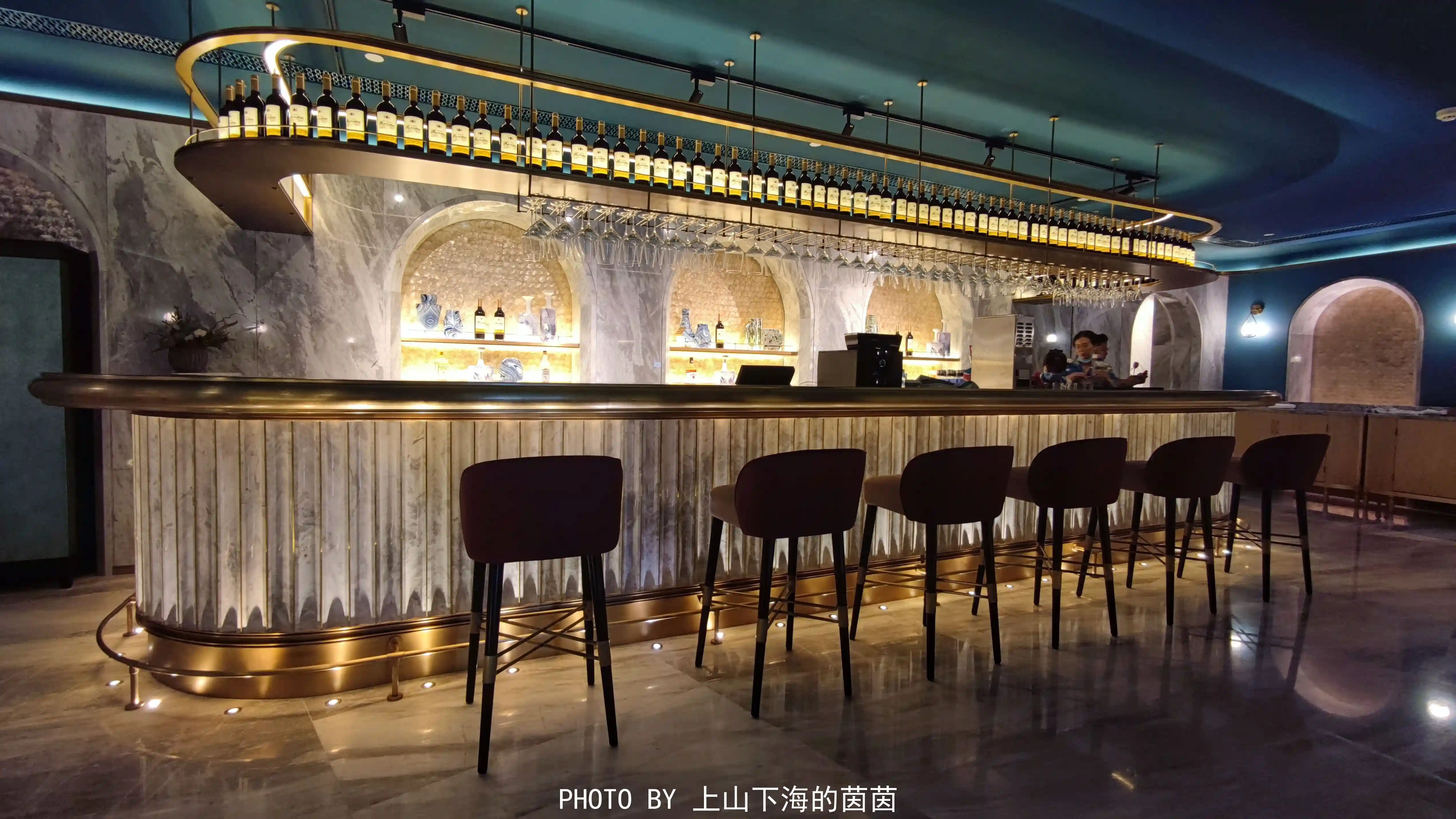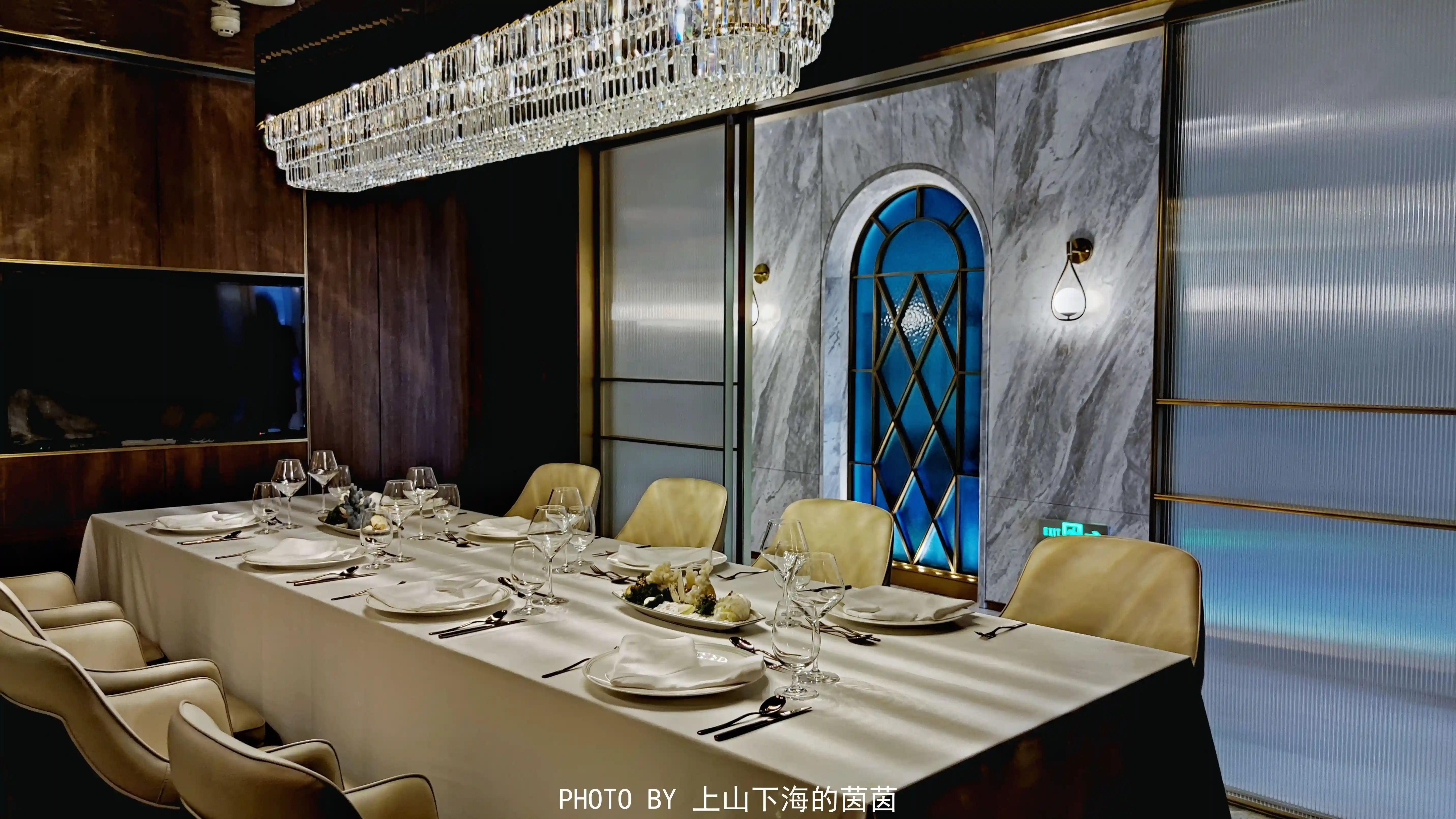 同样位于负一层的蓝宝石法餐厅是“深海梦幻”主题,冰蓝色的主色调、海浪形地毯、独特圆弧拱门间隔卡座、黄铜色的屏风背景、珍珠壁灯、精致器皿……浓浓的法式贵族范儿!