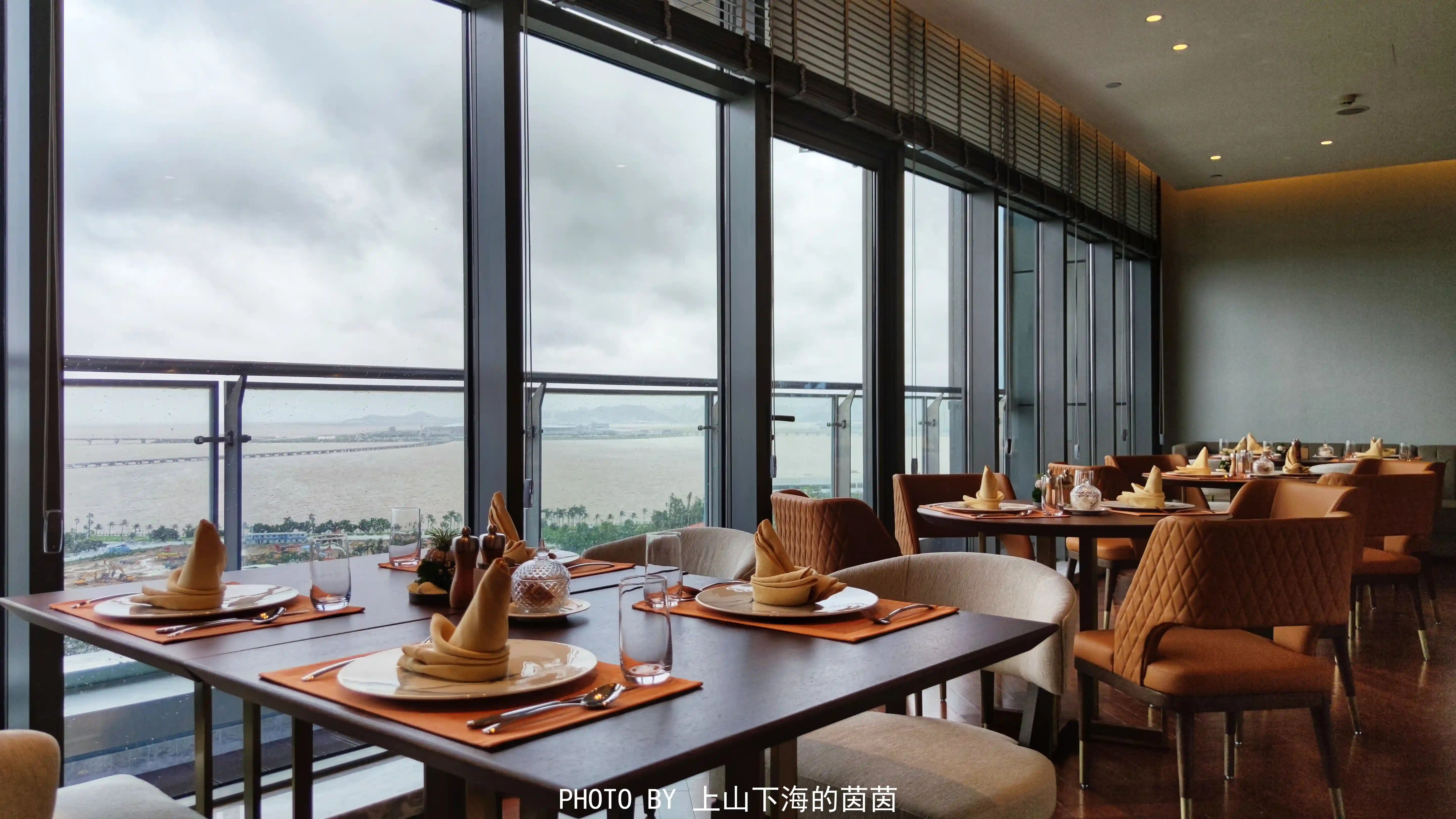 位于星海楼顶层的行政酒廊以“上空之景”为主题,全落地玻璃窗的设计将珠海迷人的海滨城市风光和蜿蜒曲折的港珠澳大桥尽收眼底,整体暖色调的软装让人心情放松。这里不对非住客开放,只给住客提供尊享自助早餐和下午茶服务。不得不说,在这里一边享用精致的餐点一边俯瞰城市全景的感觉超棒!