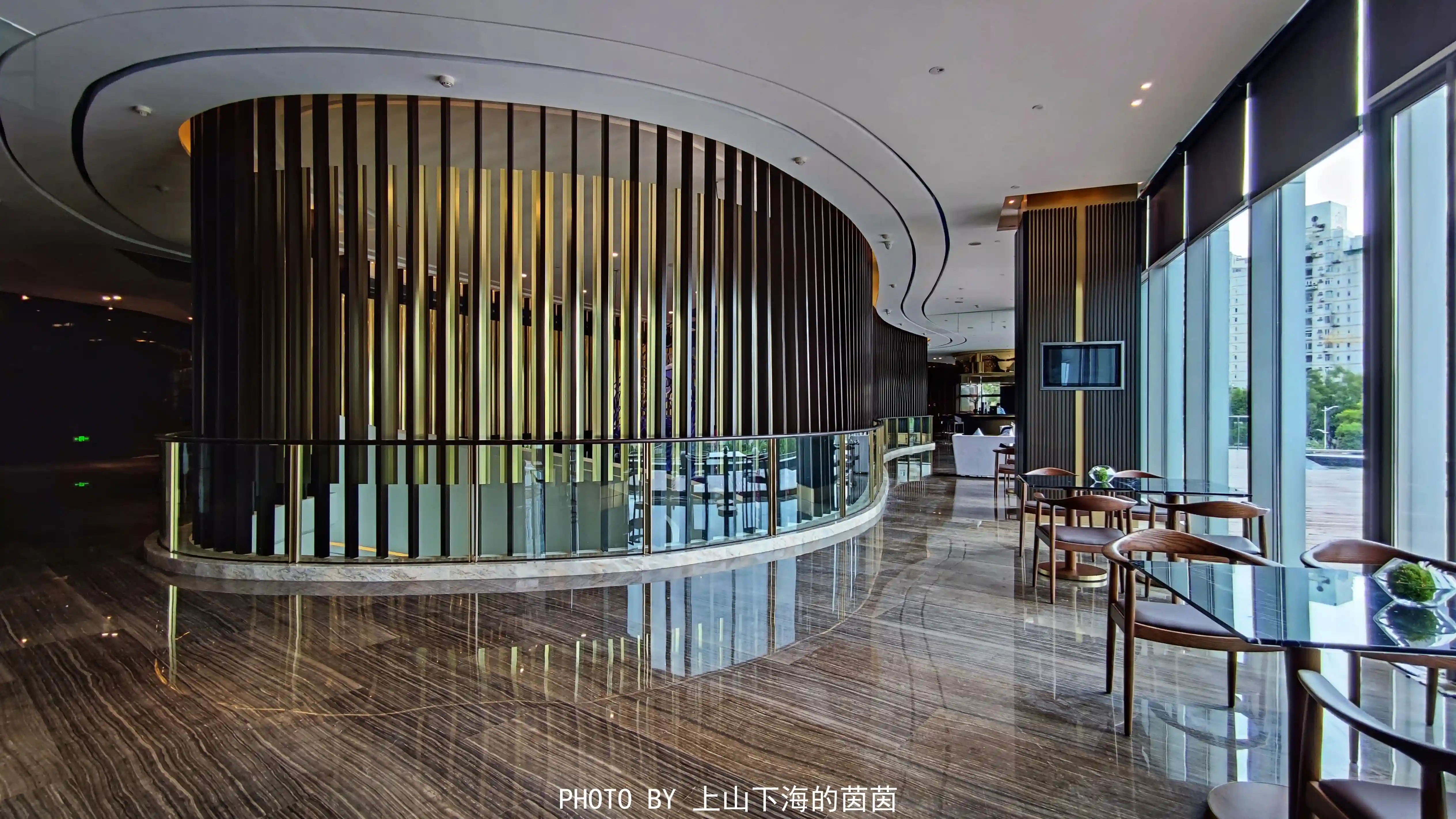 餐厅虽然是在负一层,但却是和九洲湖湿地无缝接壤的一个神奇的存在。高挑的落地窗将室外的阳光明媚和绿意盎然带入室内,让人在心情愉悦的状态下享用美食,这个设计真的棒棒哒!