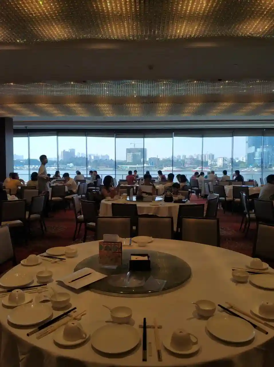 不过不同于玉堂春暖的岭南庭院风格,宏图厅是现代酒楼的装饰,可观珠江口开扬的江景,个人觉得也是不错,隐隐有维港景色的感觉。