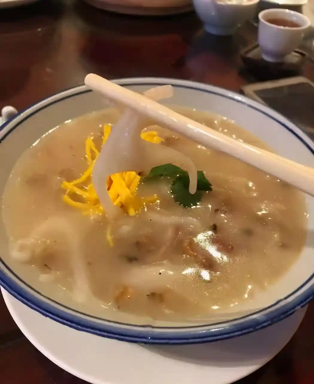 汤底用料十足,虾干瑶柱萝卜干碎,咸香而浓郁,水菱角是人工“濑”出来的,也考验师傅的手势,每个水菱角软糯又厚实,口感很好。