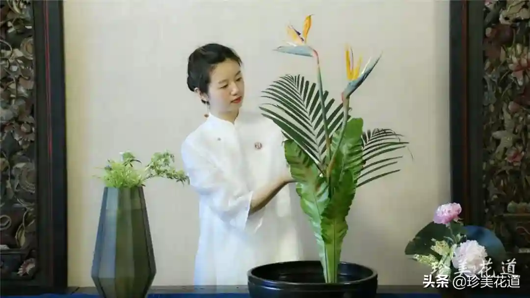 一件作品之完美呈现,插花作品要体现骨架之气势以及稳定,俗话说:“插花者不易插其灵”,其灵之势,在于空间上安排,从虚空中布势,其深远而空灵方妙。