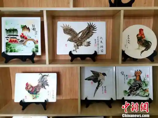 在杨长明干净整齐的工作室里,或圆或方的瓷盘上,大鹏展翅、小桥流水、雄鸡报晓……一幅幅栩栩如生的作品,全部都出自杨长明之手。