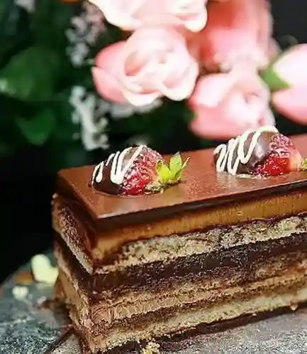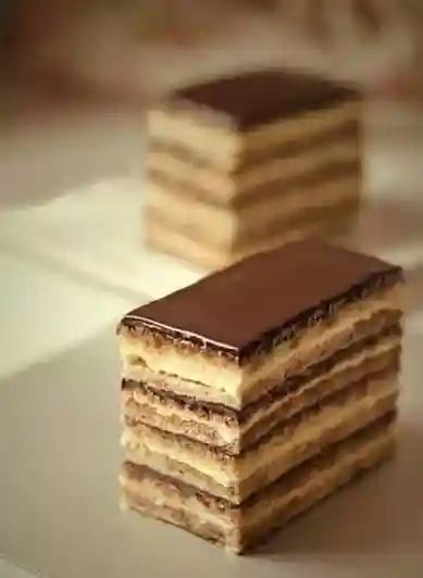 这款甜点的灵感源于1875年修建完工的巴黎大剧院(Opéra)。1954年,当时巴黎著名的甜点店Dalloyau创造了一款总共六层的甜点,包括三层杏仁味绵饼、两层咖啡奶油馅和一层巧克力奶油馅,最后还要淋上一层镜面巧克力酱。香气馥郁,口感丰富而富有层次。